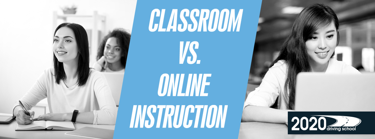 So there you have it. A short rundown on the pros and cons of online instruction vs. classroom instruction. At 2020 Driving School, we gladly offer both types for Driver Improvement and Driver’s Education, giving you options for the method you prefer. If you have any questions or would like more details, don’t hesitate to contact us.